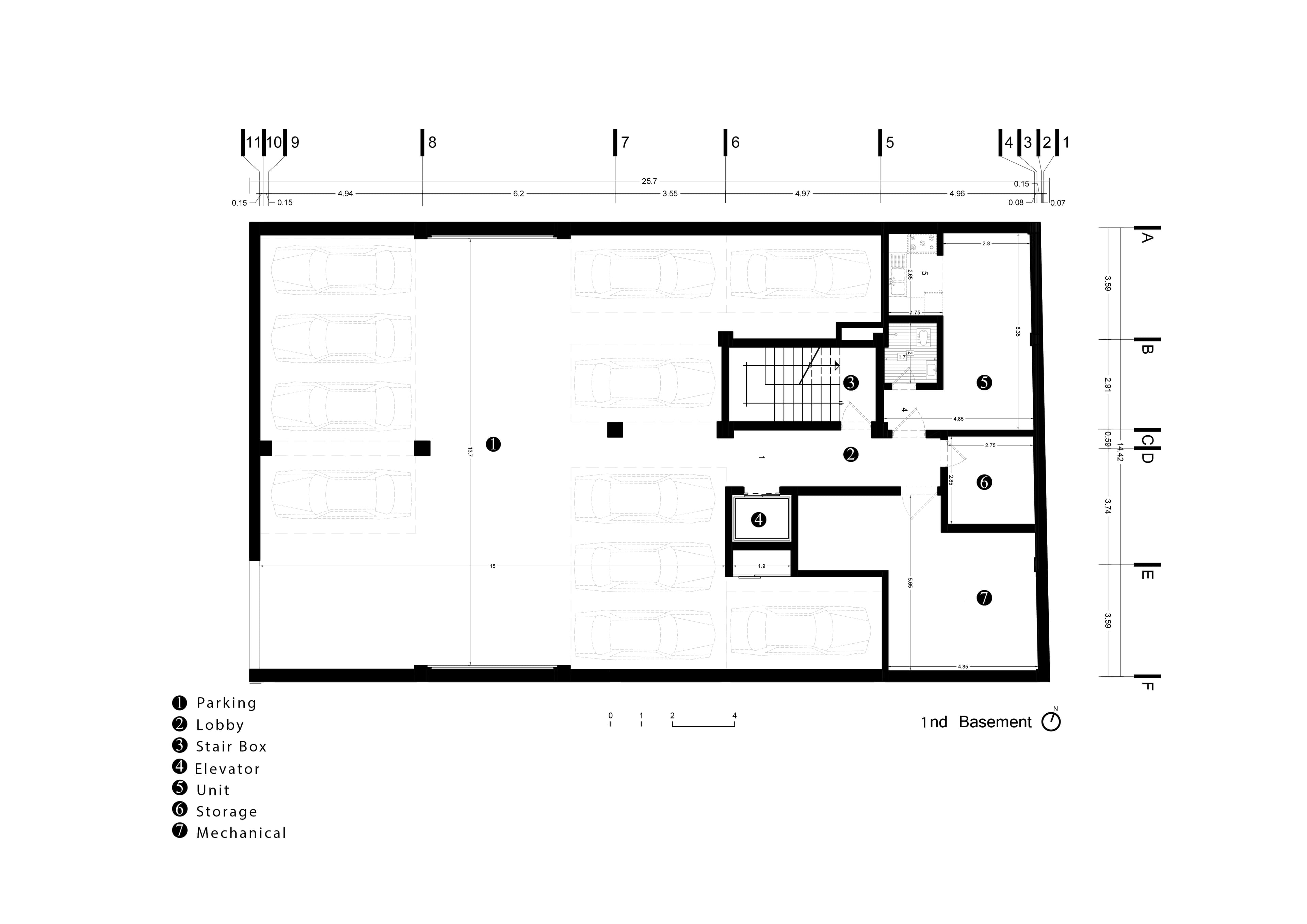 Each floor provides two homes. The proximity by stresst is less beneficial, thus the North unit is smaller and has slight adjustments due to modifications in the north façade design; otherwise, the floor layouts are consistent.