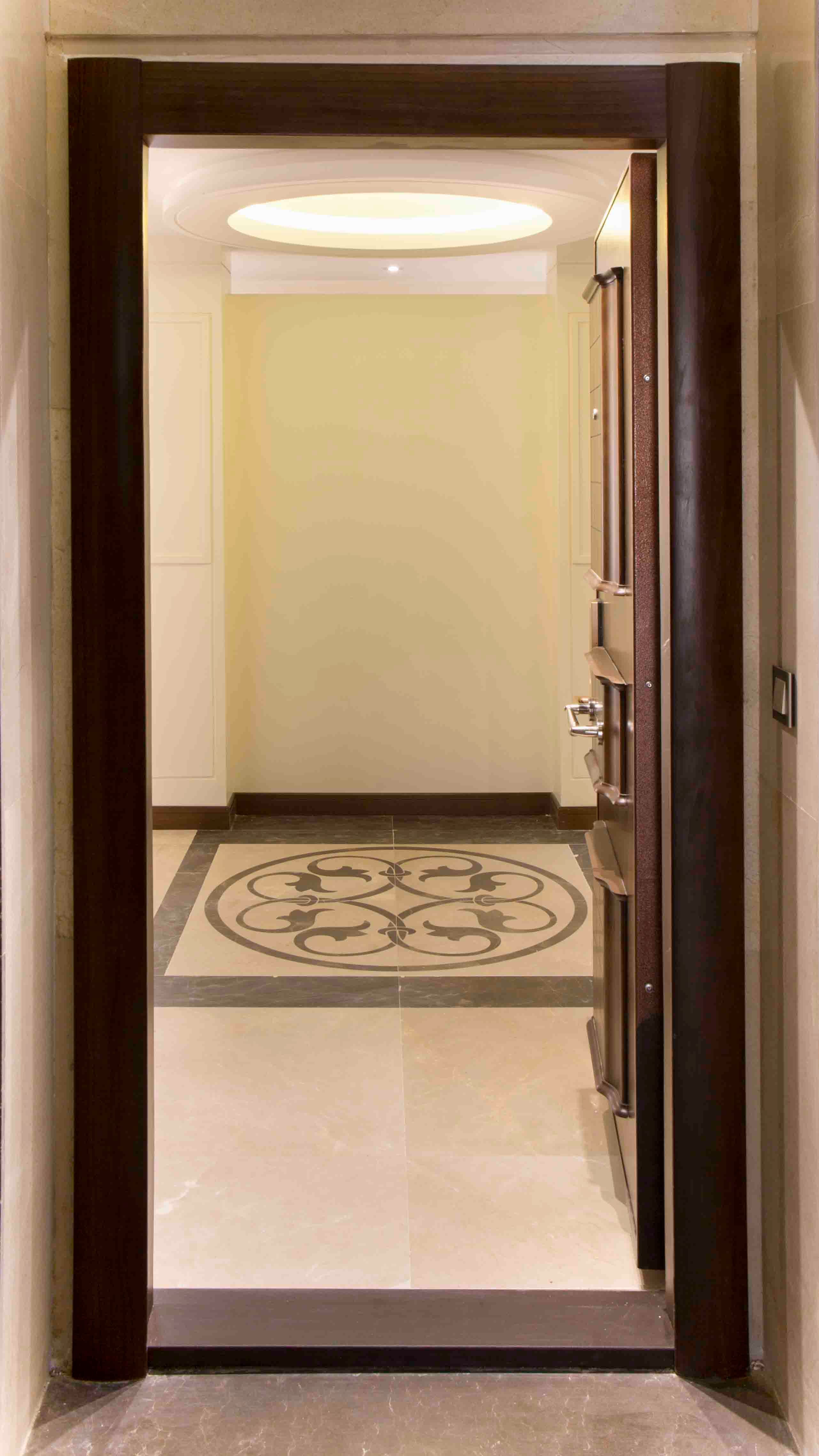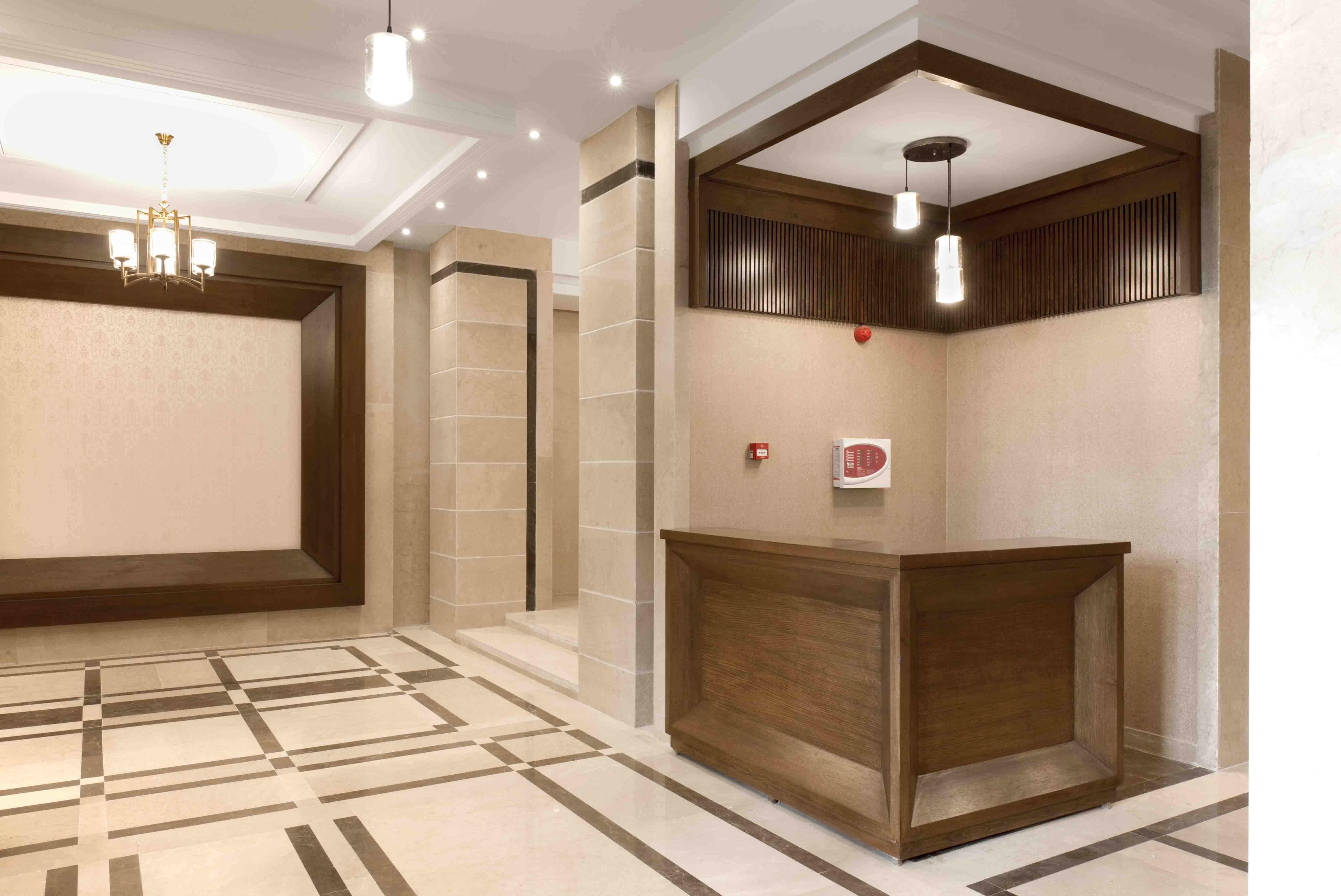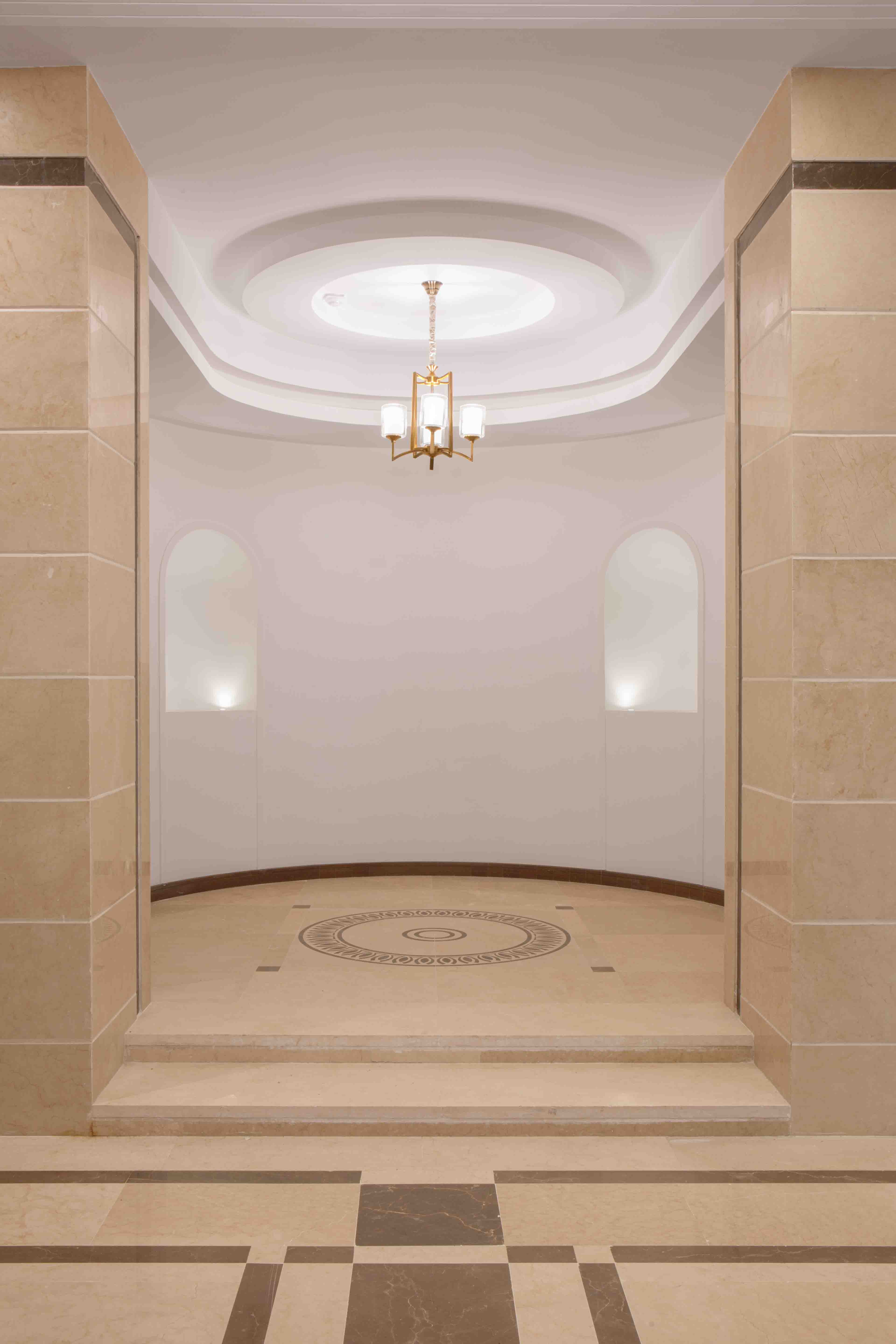 The grand entrance, framed by a prominent arch, invites residents and visitors into a space of elegance and refinement.