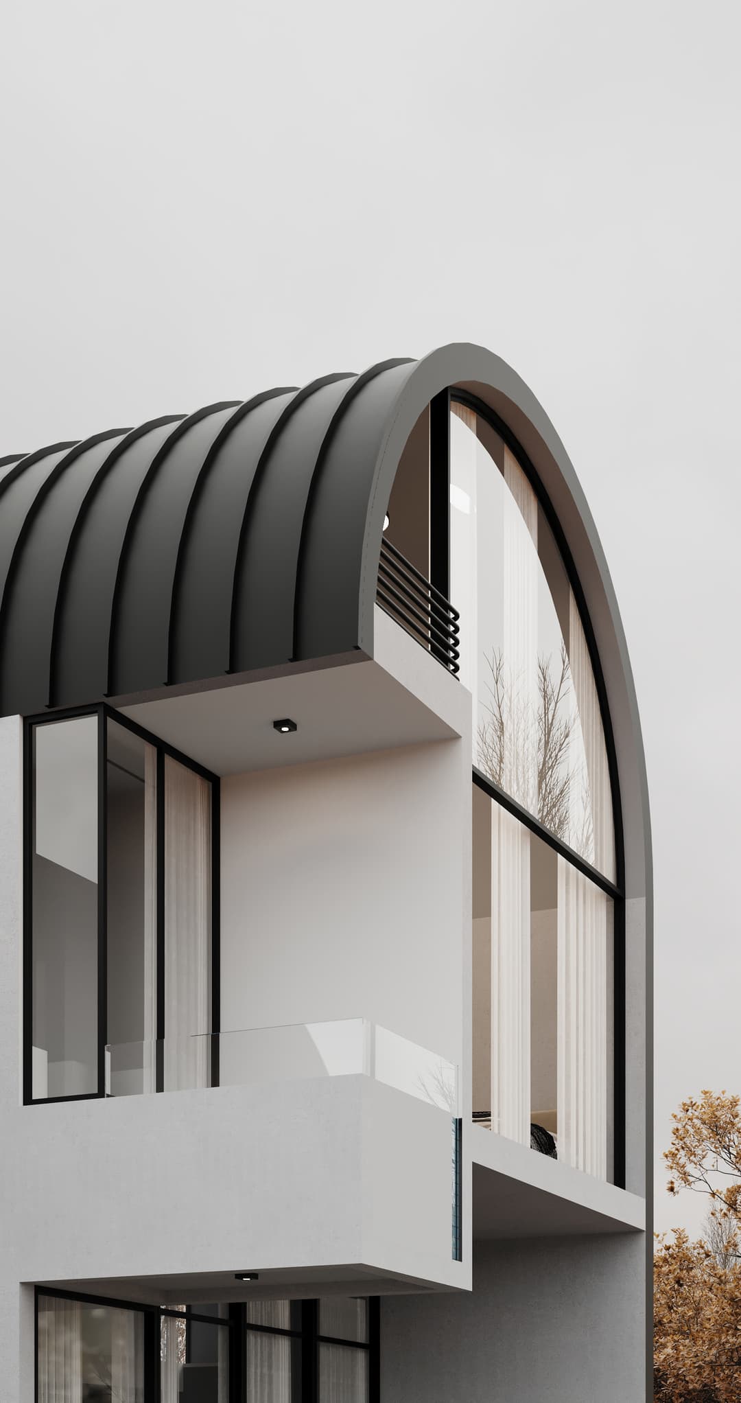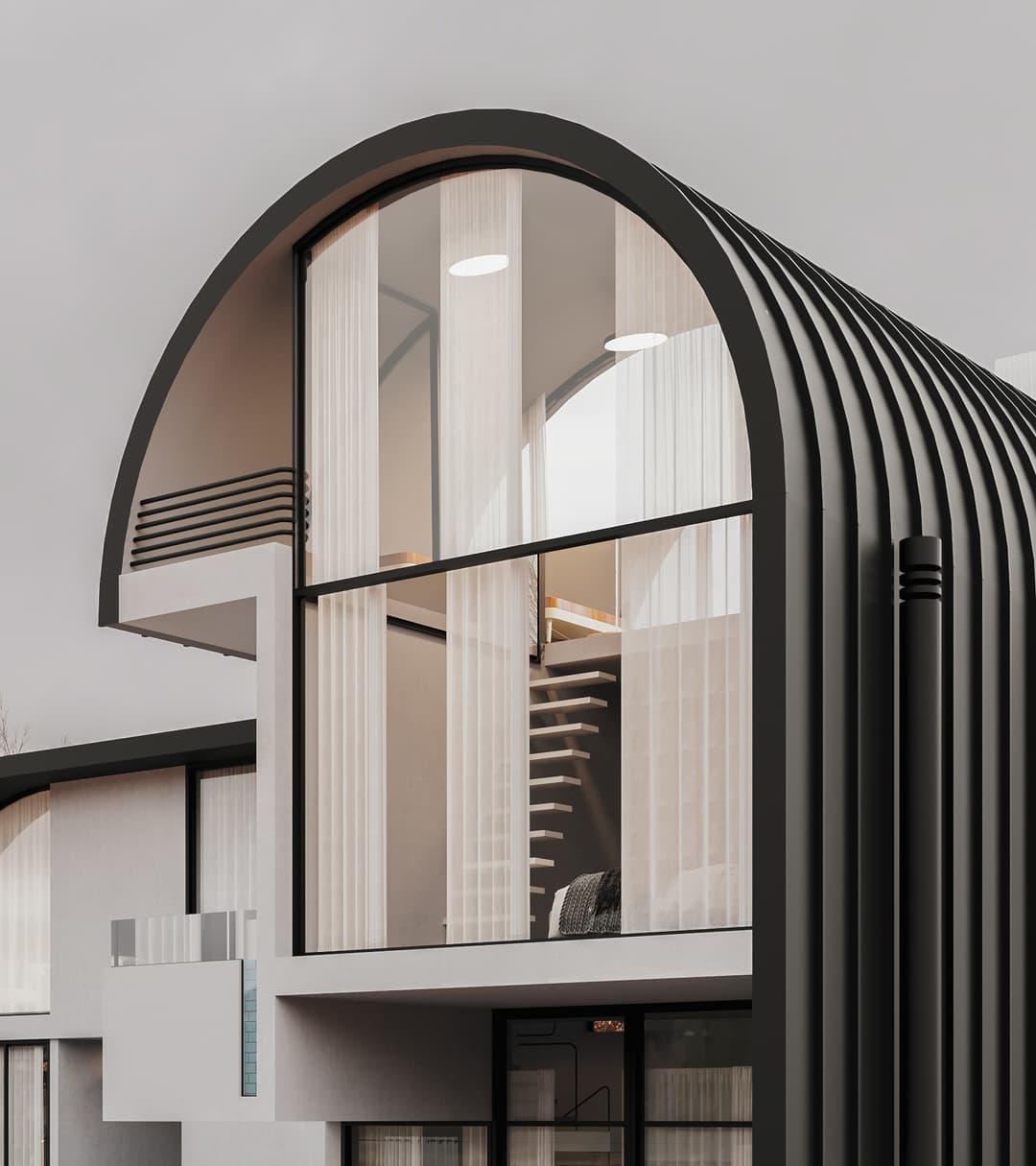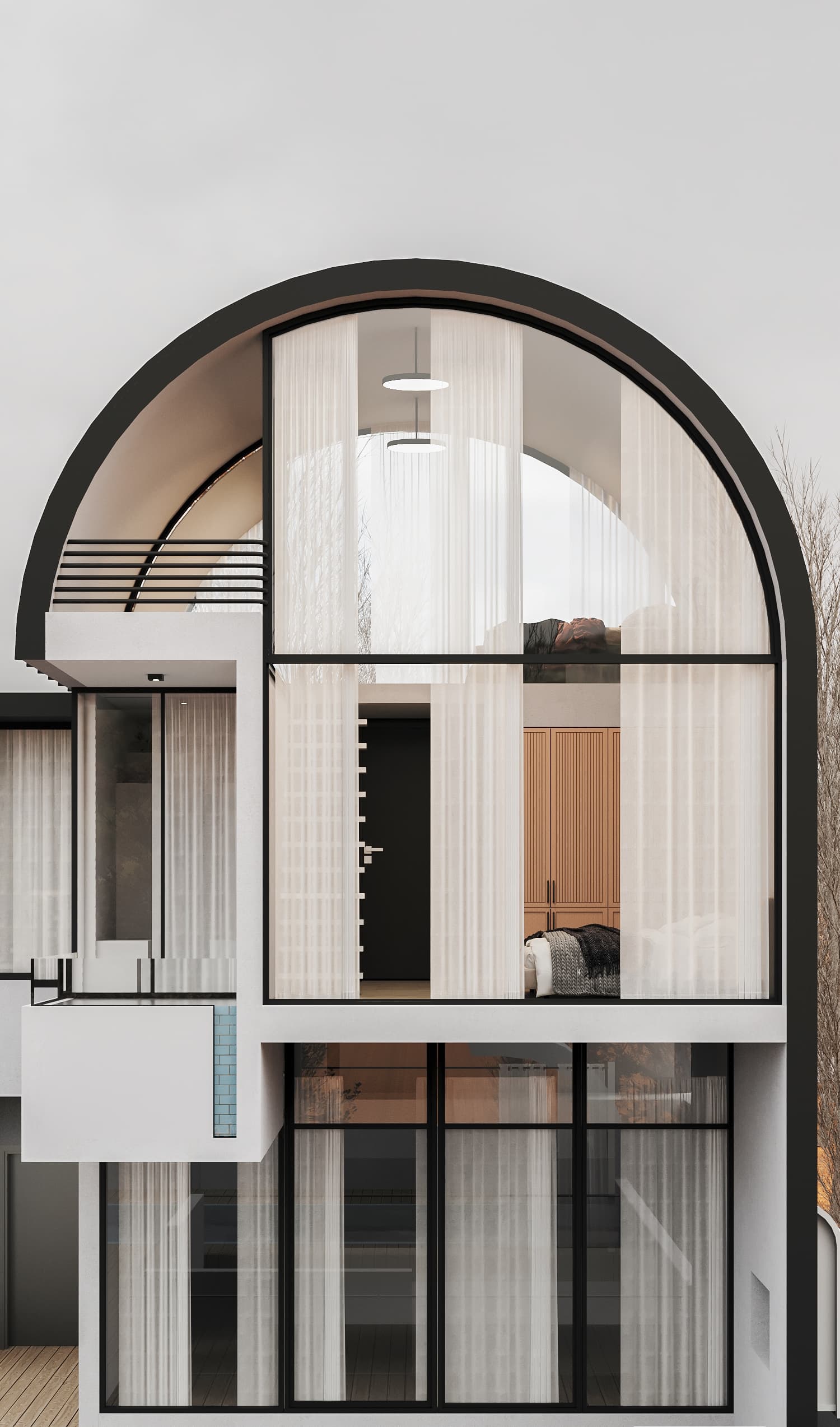 The name "Varesh" comes from ancient Persian and meaning "to rain." This project is located in Anzali, the rainiest city in Iran. For this reason, we chose a roof top design that combines the traditional Iranian arch with local gables. This allows for a complete sea view without obstructing the view of the sea.