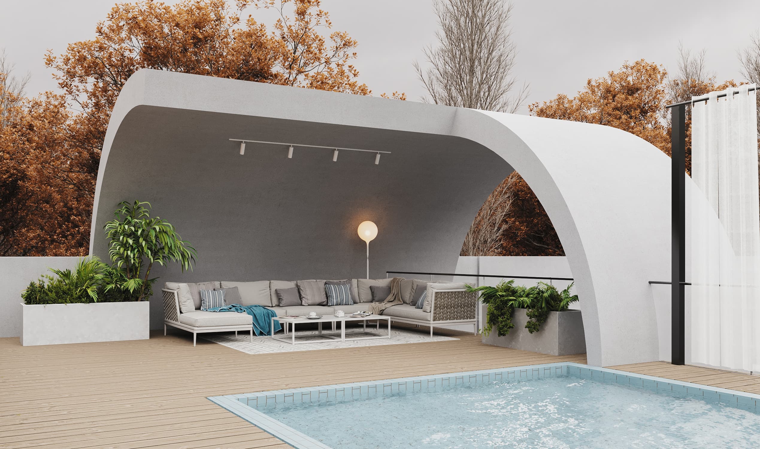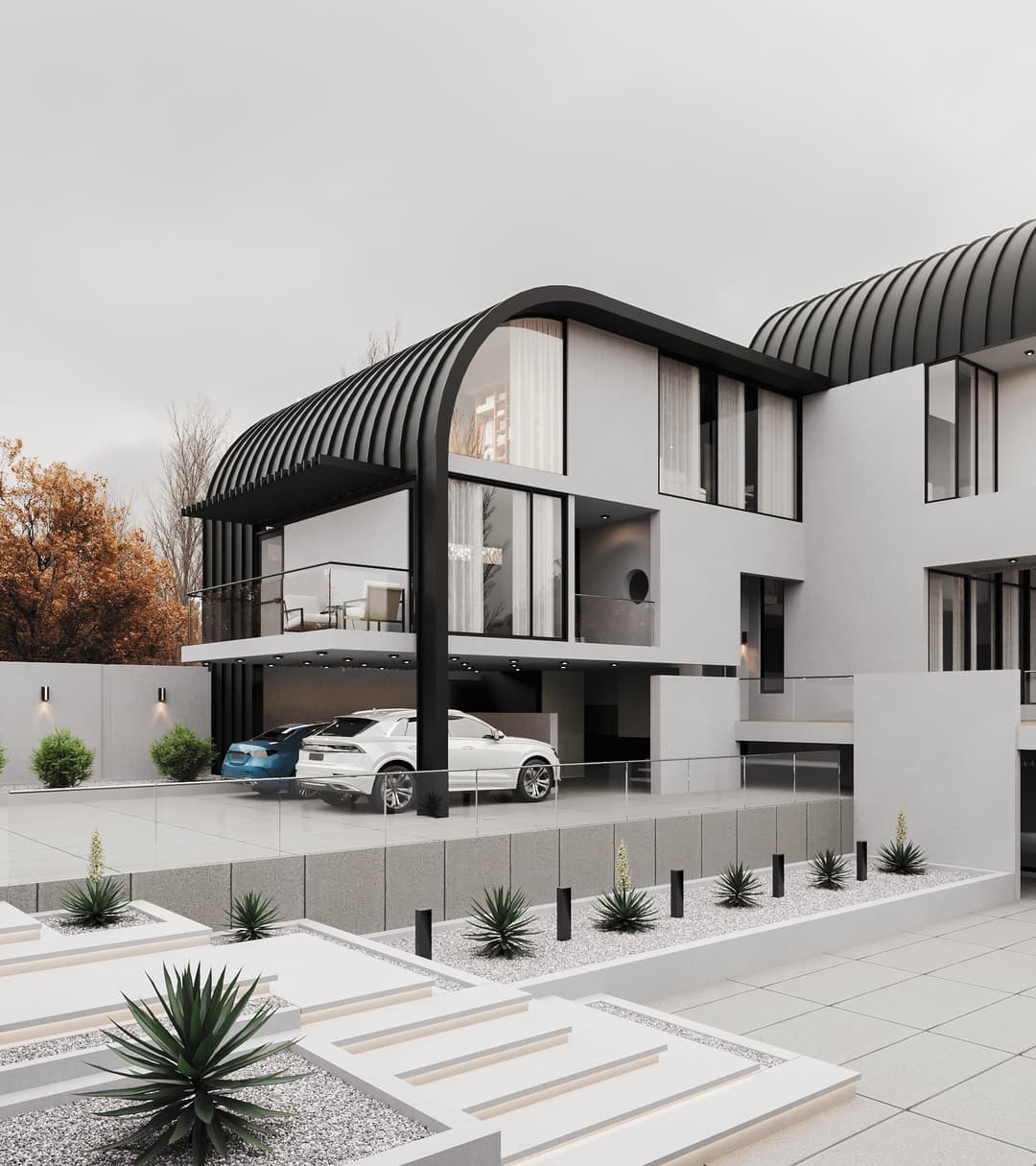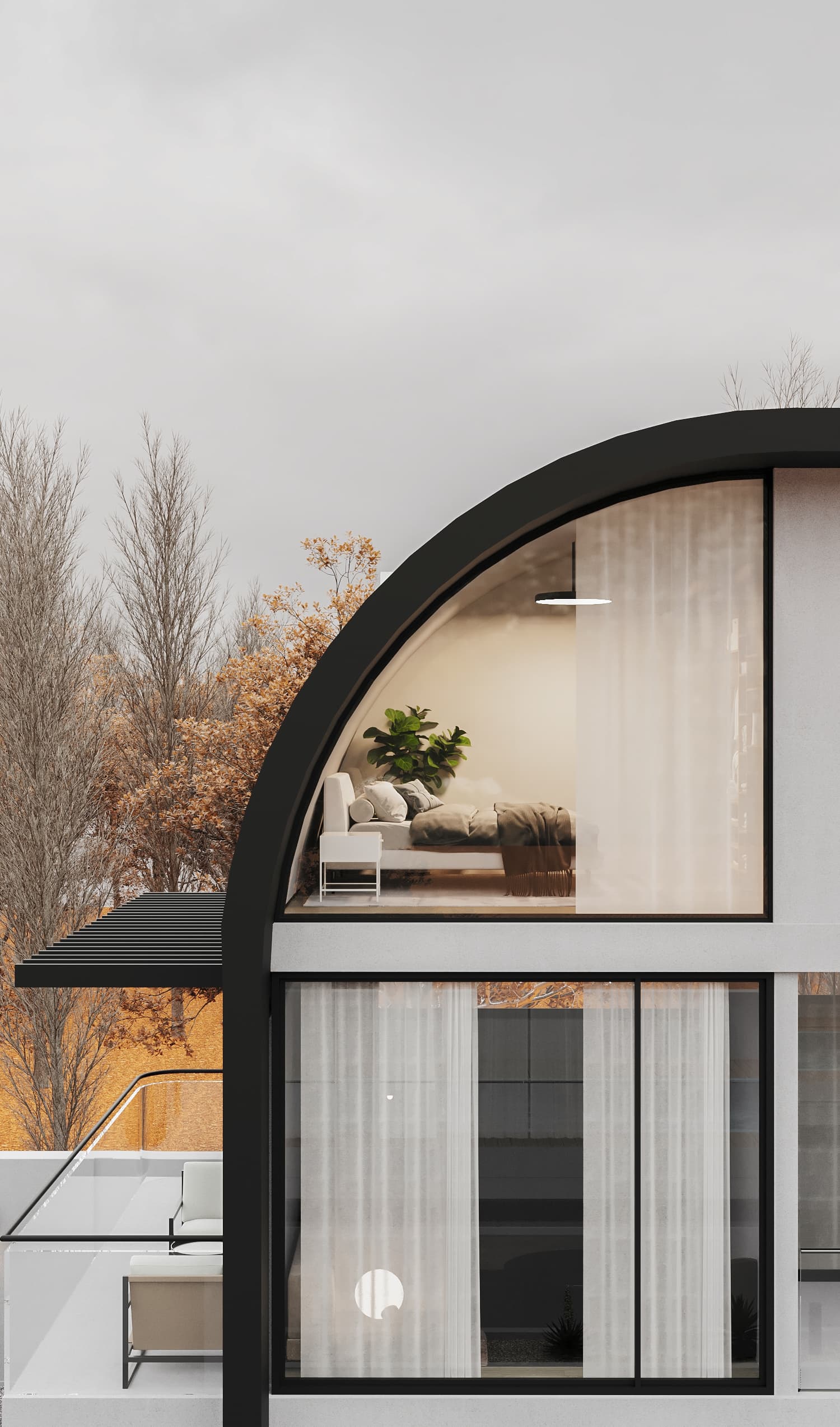 The name "Varesh" comes from ancient Persian and meaning "to rain." This project is located in Anzali, the rainiest city in Iran. For this reason, we chose a roof top design that combines the traditional Iranian arch with local gables. This allows for a complete sea view without obstructing the view of the sea.